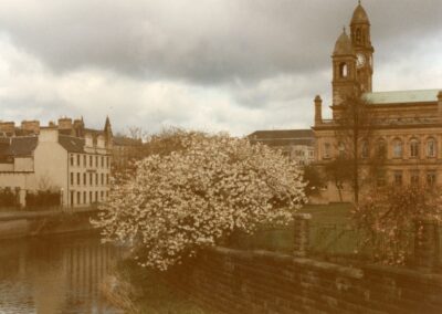 The Caullay family lived in Kilmacolm, Scotland for many years up to and during WWI until emigrating to the USA and Canada in the1920s. Kilmacolm was a village of about 1200 residents in 1901 located approximately 20 miles from Glasgow, the largest city in Scotland at the time with a population of 762,000. The Caullay family lived in a multi-unit residential building in a place named Low Shells in Kilmacolm. Low Shells was built as a school in the early 1800s and then became a hotel before being converted into a multi-family residential building in the late 1800s with no street address – before postal street names and addresses came into use in Kilmacolm.